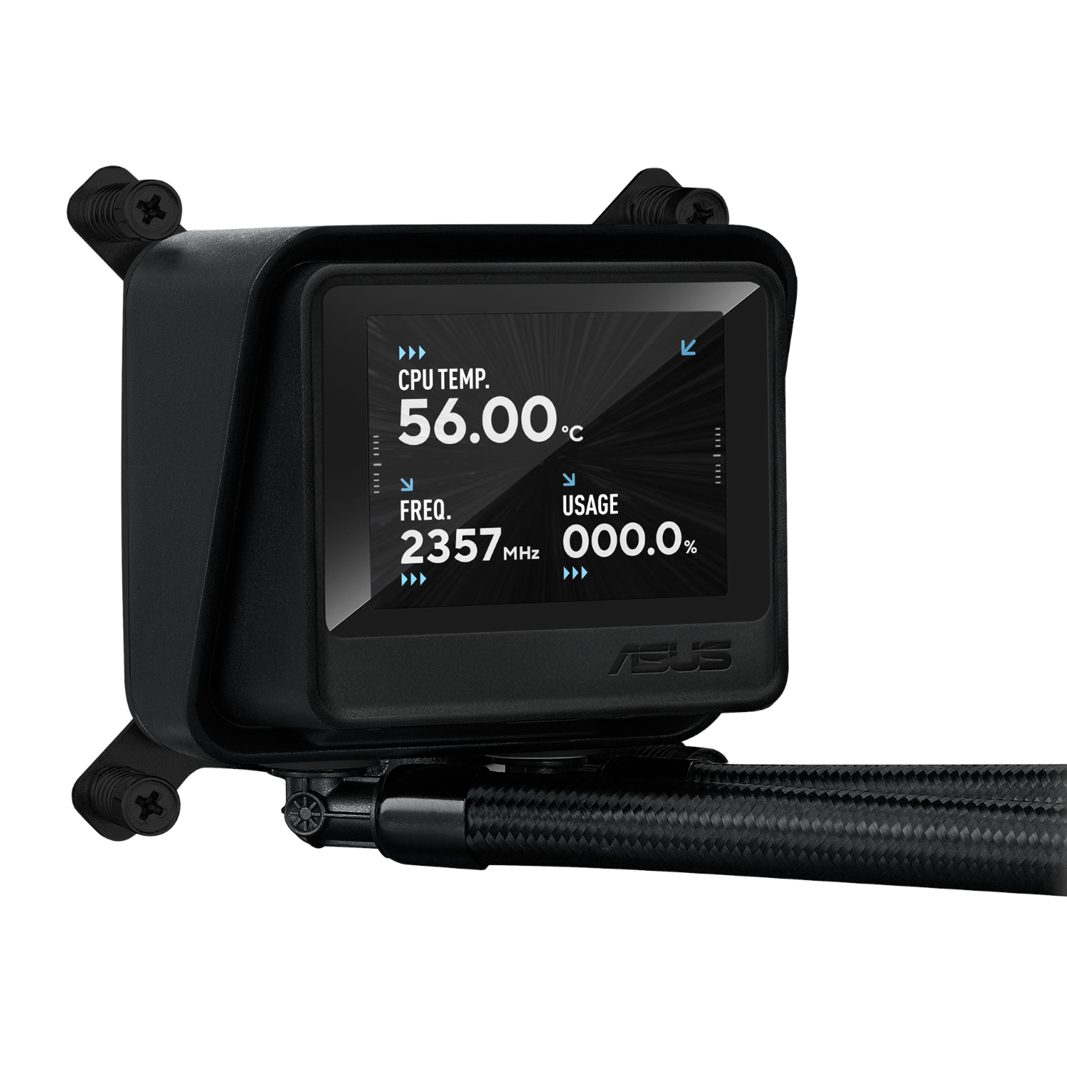 A standout feature of the MAX Gaming LC 360 is its vibrant 2.4-inch full-colour IPS LCD display, which brings system monitoring and personalisation directly to your PC build. Users can display custom animated GIFs, system information, or real-time CPU metrics such as temperature, voltage, clock speeds, and fan RPM through ASUS’ intuitive control software. The integrated ARGB lighting synchronises seamlessly with ASUS Aura Sync, enabling full ecosystem lighting coordination across compatible components. Designed with both performance and convenience in mind, the ASUS MAX Gaming LC 360 ARGB LCD delivers powerful cooling, sleek aesthetics, and intelligent monitoring, making it an ideal choice for modern high-performance gaming PCs.