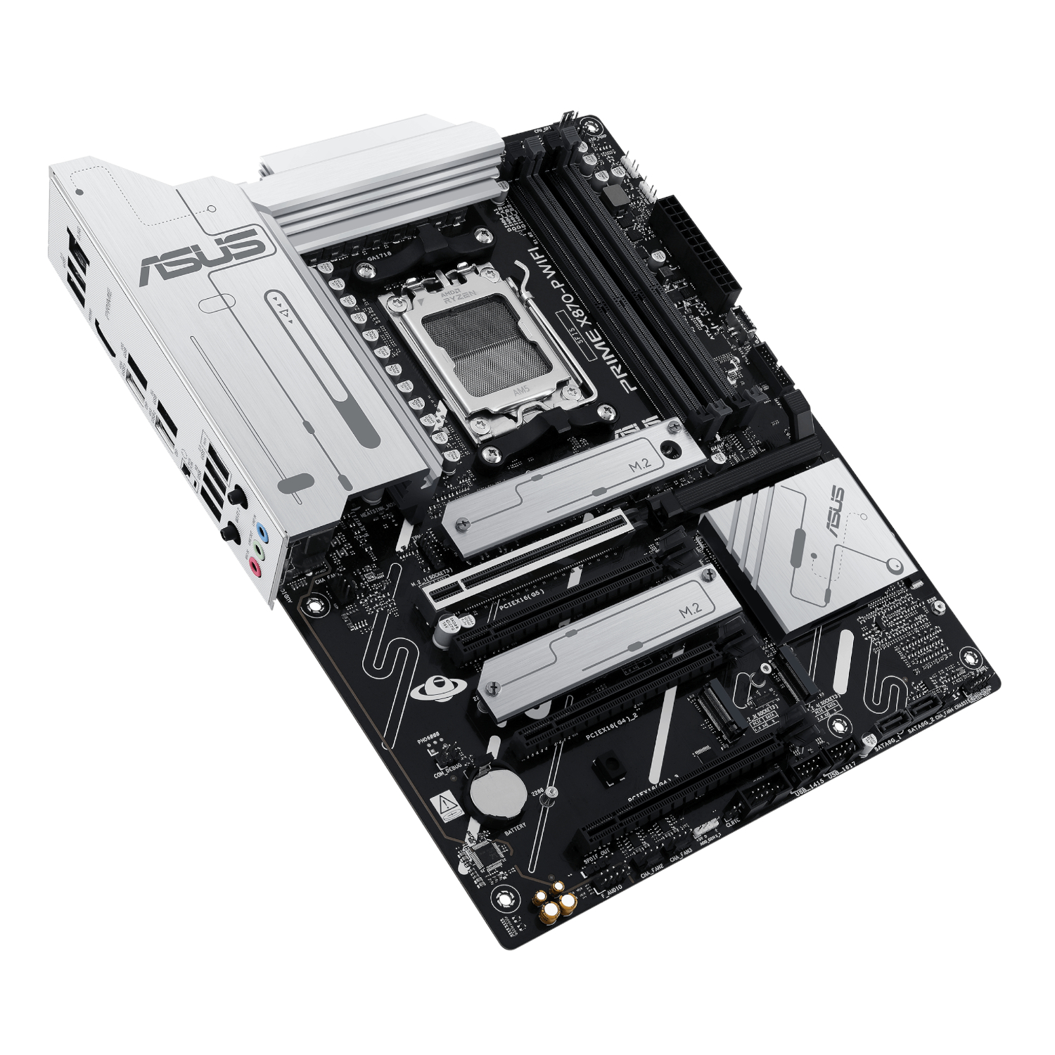 Designed with DDR5 performance in focus, the PRIME X870-P WIFI supports memory speeds up to 8000+ MT/s (OC) with AMD EXPO™ and ASUS Enhanced Memory Profile (AEMP) compatibility. Whether you’re running high-end gaming rigs or productivity-focused workstations, memory tuning is effortless thanks to a wide array of UEFI BIOS tools. Four onboard M.2 slots futureproof your storage setup—one PCIe 5.0 slot offering speeds up to 128Gbps, two PCIe 4.0 slots up to 64Gbps, and one PCIe 3.0 slot for additional expansion flexibility—ensuring fast system boot times and snappy application performance.