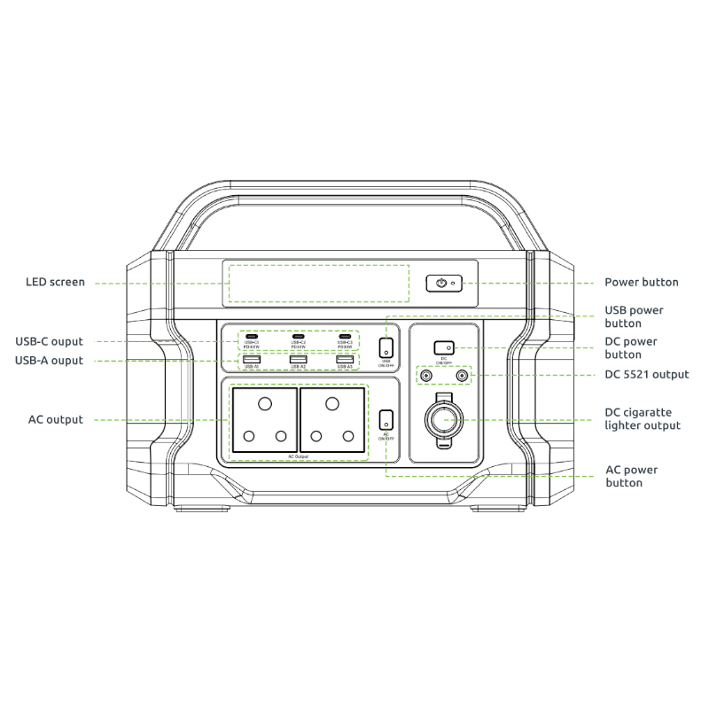 • 1x Type-C 100W PD Port (5V/3A, 9V/3A, 12V/3A, 15V/3A, 20V/5A)