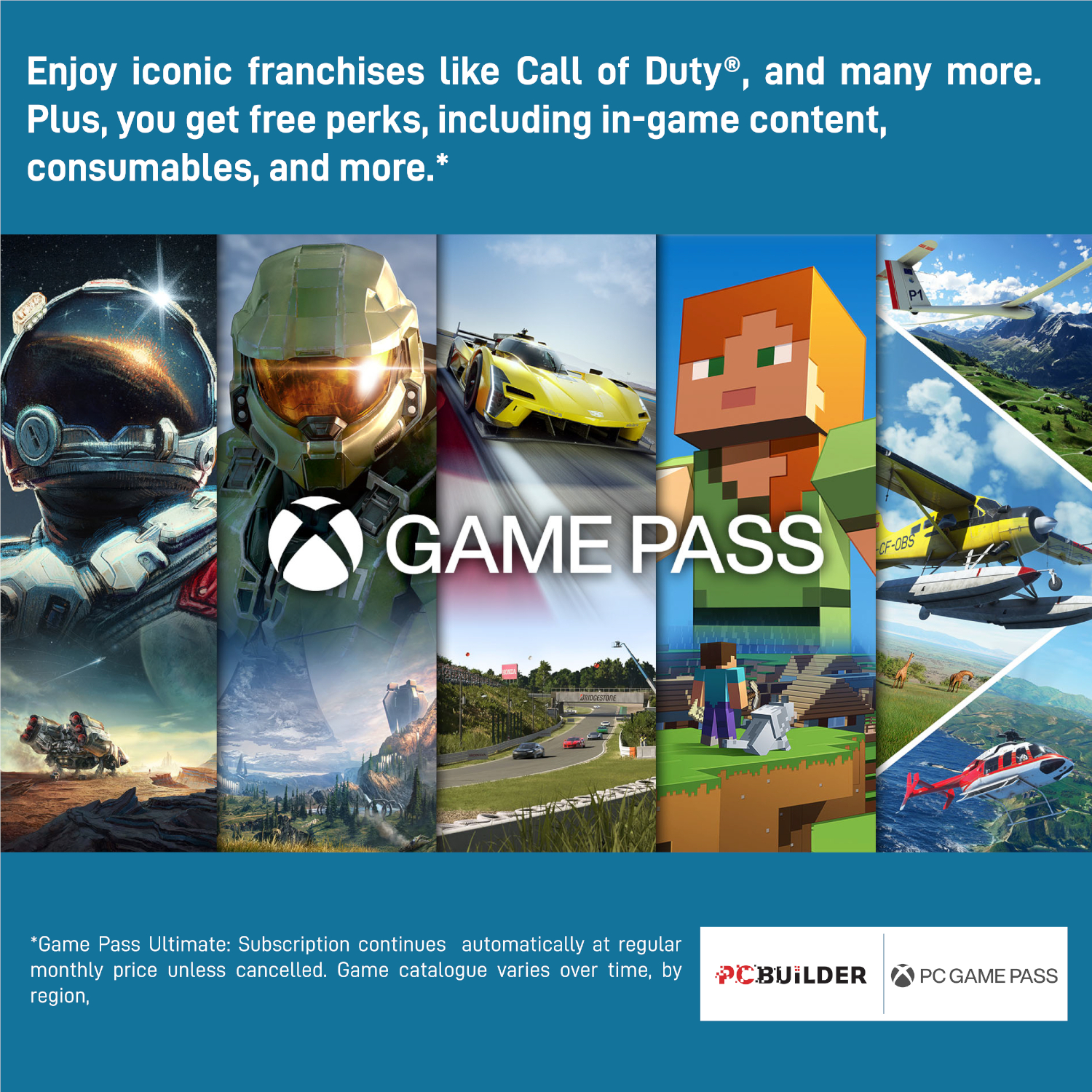 The PCBuilder RECON Windows 11 Gaming PC also includes one month of PC Game Pass including EA Play. Play over 100 high-quality PC games, in various genres such as Halo Infinite, Forza Horizon 5, and Minecraft on your new gaming rig. With new games added all the time, there’s always something new to play from day one.